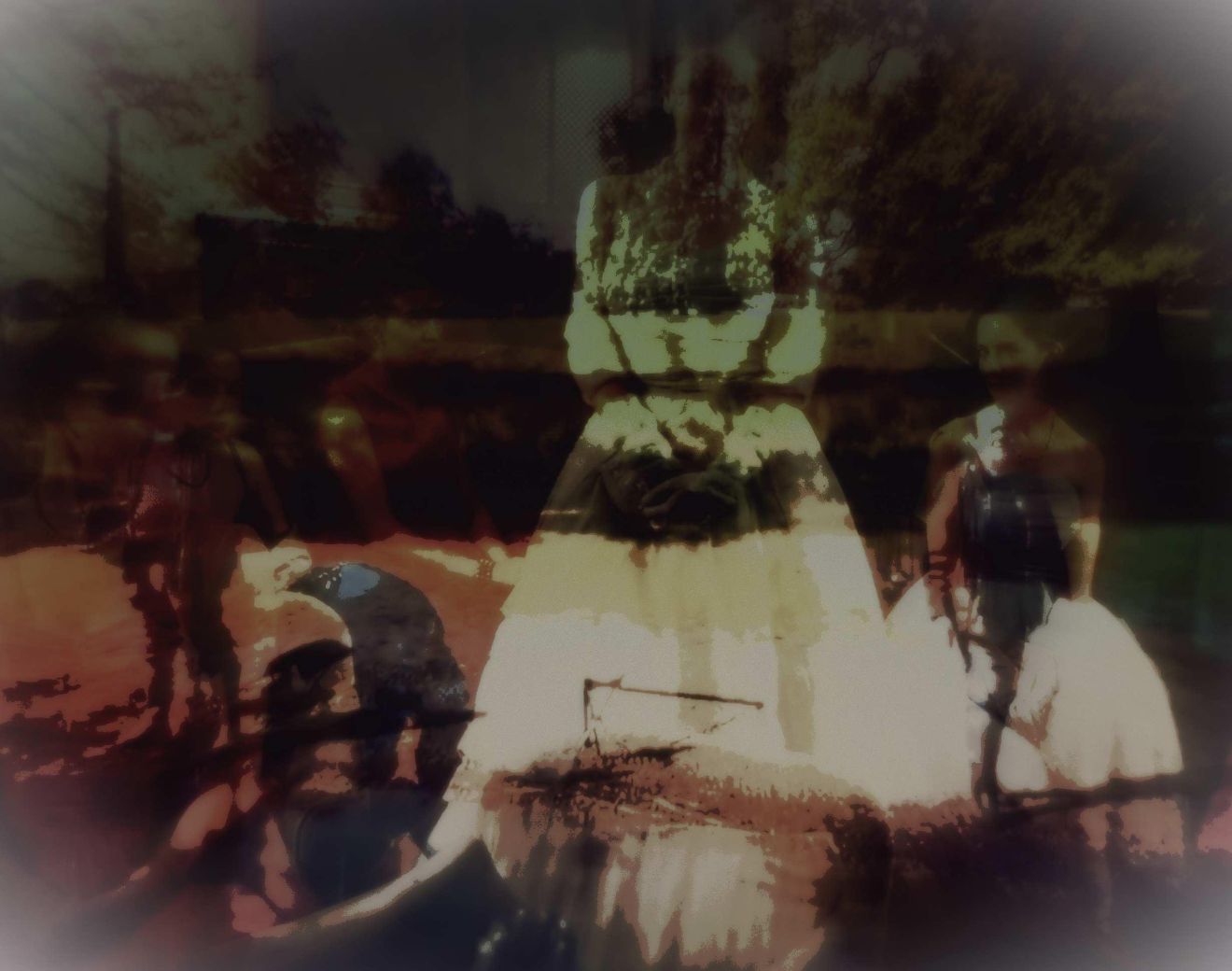 Ráno jsem pak viděl trosky kamenných pomníků i dole na náměstí vesnice u autobusové zastávky.