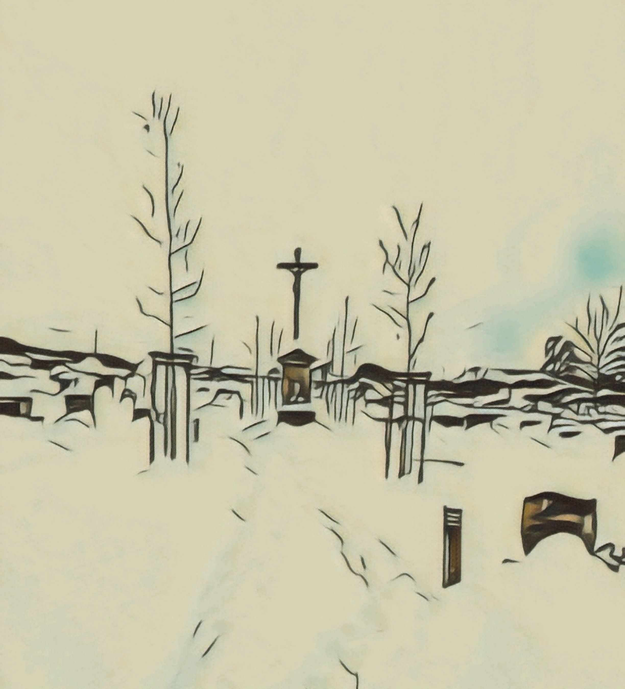 Hřbitov sněhem zapadaný