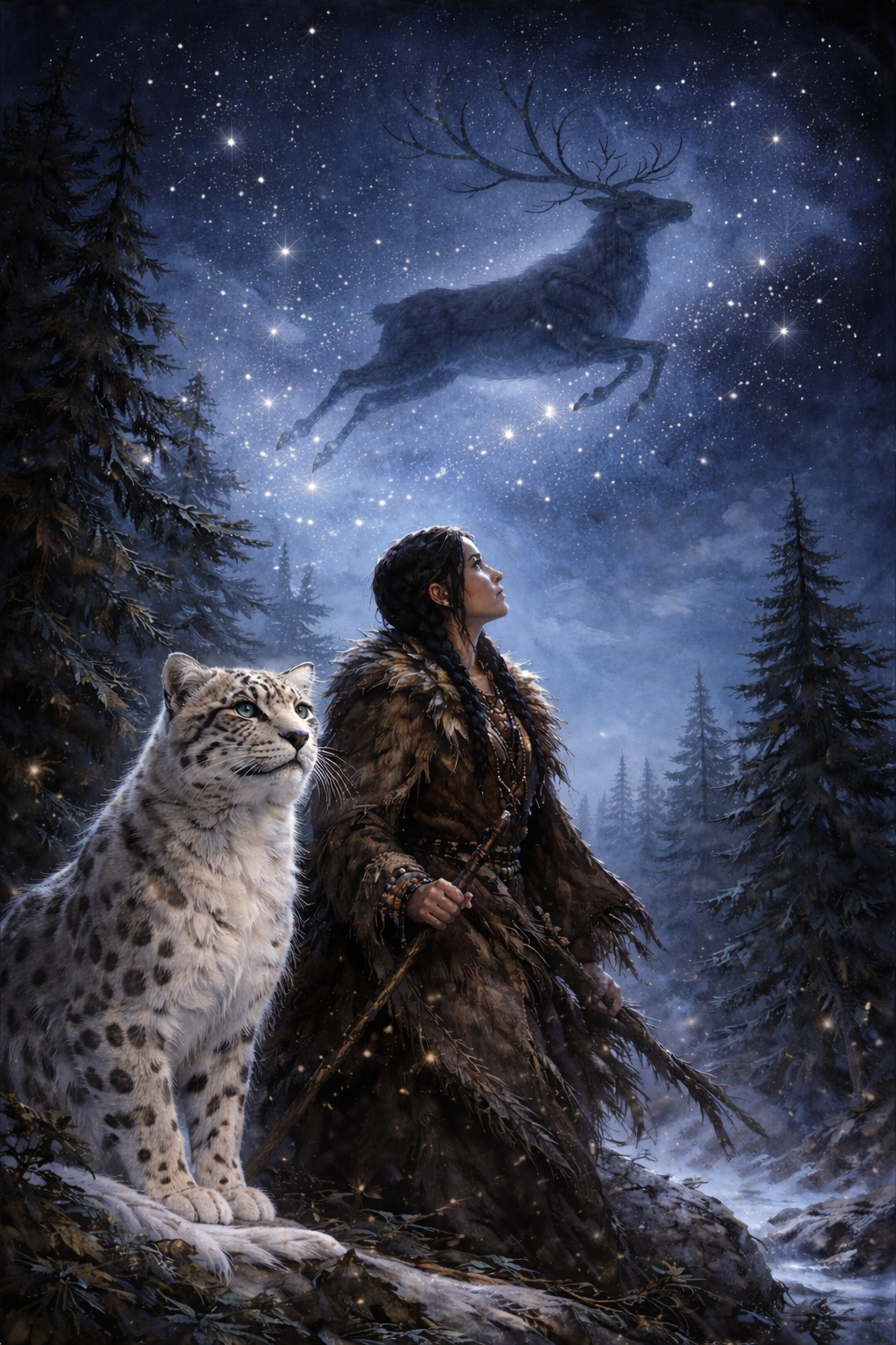 Probudila mě bolest v hlavě. Posadila jsem se uprostřed noci a uviděla bílého soba, jak odchází z našeho ležení a skáče na oblohu. Chtěla jsem vyrazit za ním. Ale kočka za mnou řekla: