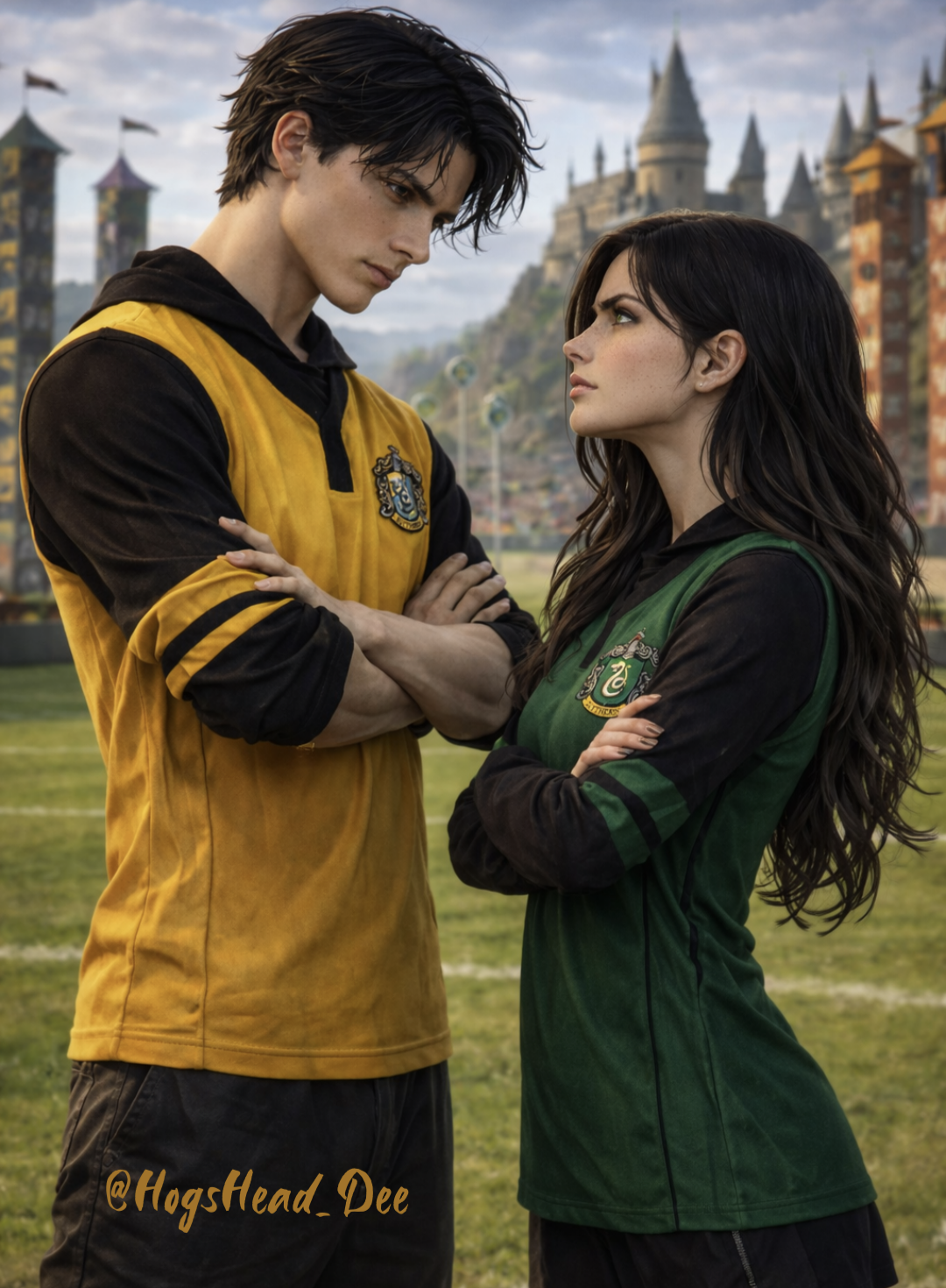 „Víš, nejsi první ani poslední, kdo mě podceňuje kvůli koleji." Narovnal se zpět do plné výšky a stále stál blízko. „Ale můžu ti slíbit, hade, že až se příště potkáme na hřišti, budeš mě mít plné ruce práce..."