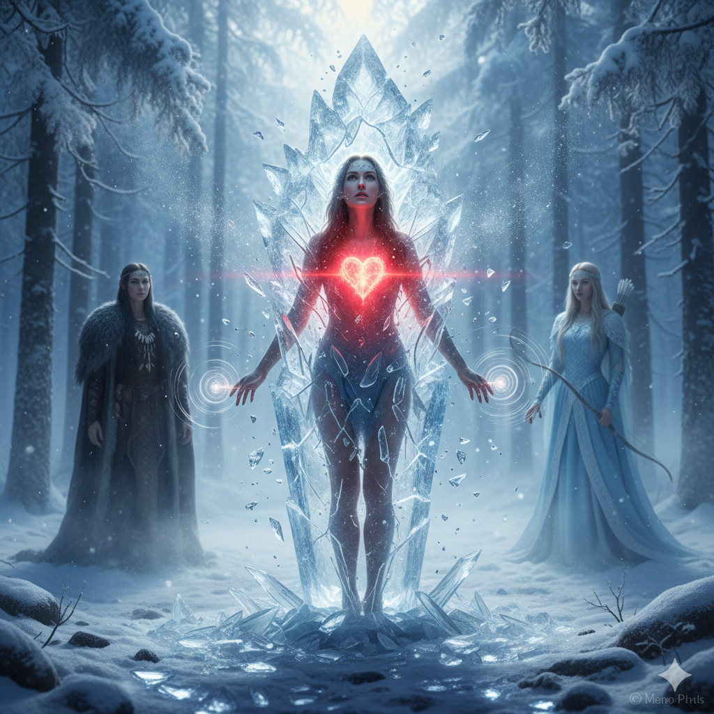 Vzala jsi tedy dětskou ručku sestersky do své a v okamžiku, kdy se vaše prsty setkaly, se čas zastavil. Tvůj dech se změnil v stříbrný obláček a mráz pronikl skrz naskrz tvým tělem. Ztuhla jsi v ledovou sochu. Jen tvé srdce tlouklo dál, žhavé a rudé.