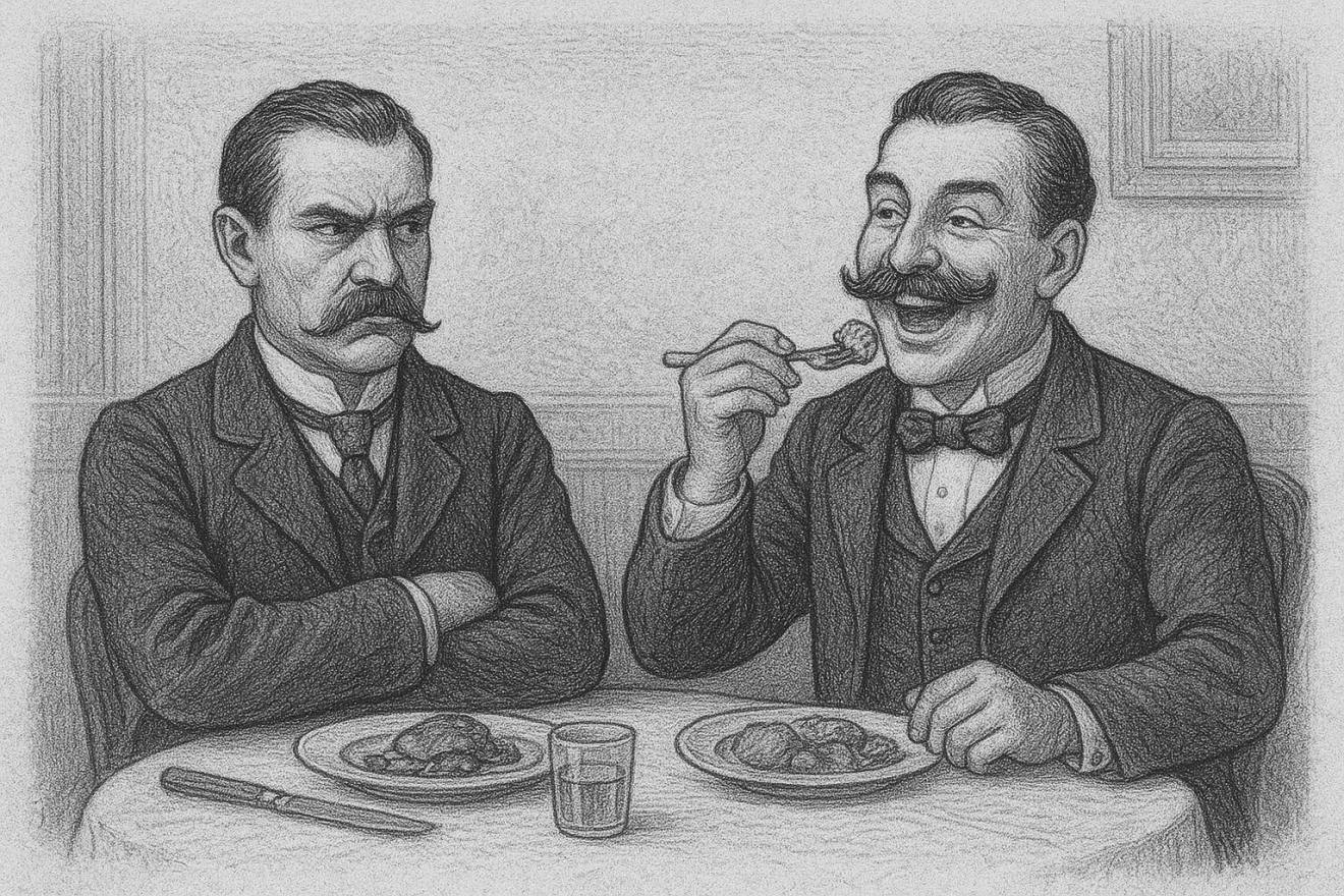 Gerasimos Agripidoula velmi rád jedl, ale večeře v restauraci s Gerasimem Agripidoulou pro něj byly naprostým utrpením.