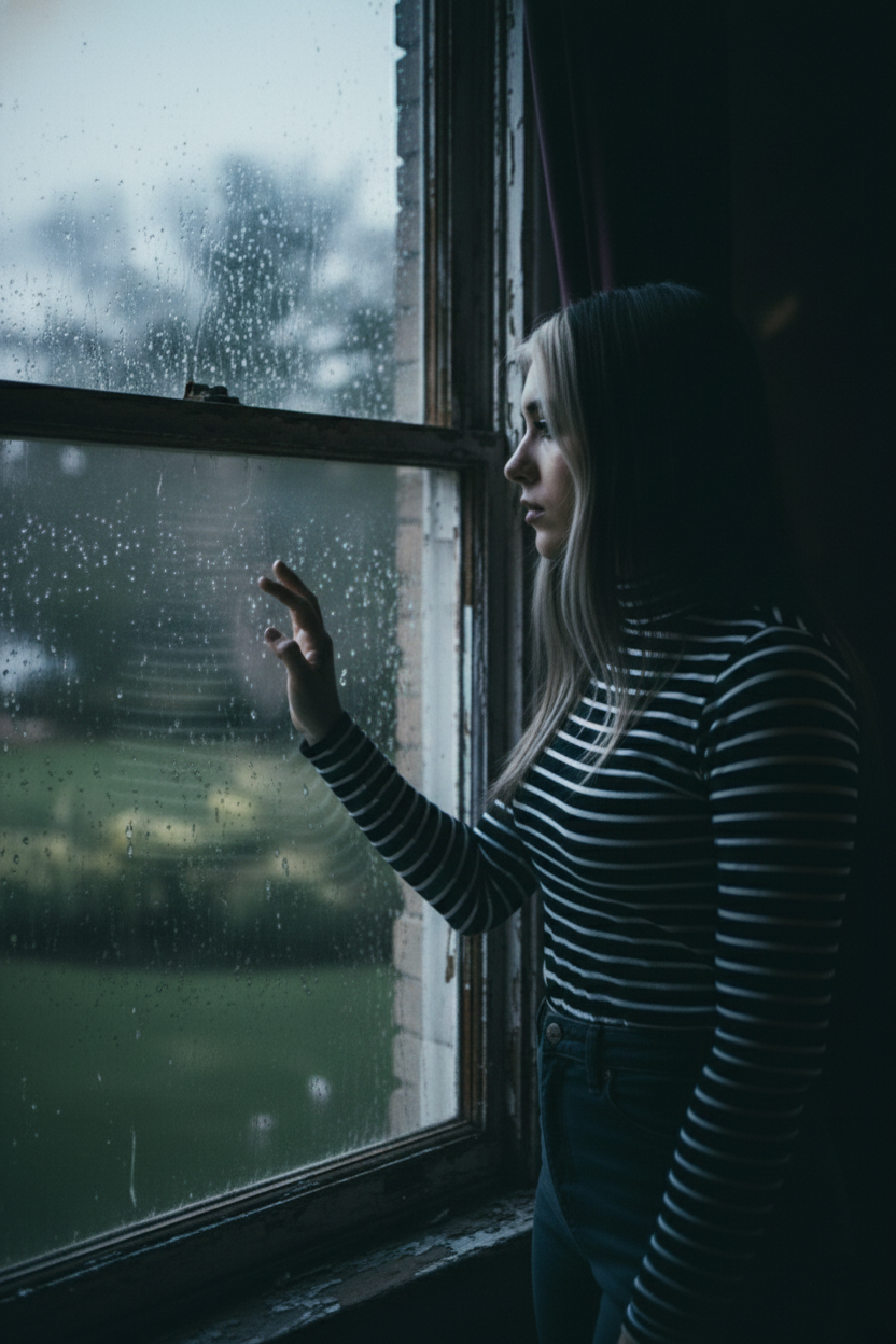 A vykročila ven — aniž by si všimla, že na okně, kde předtím seděla, zůstalo lehké mlžné otisknutí, které nebylo její.