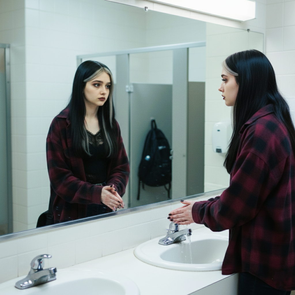 Umyla si ruce, opřela se o umyvadlo a zadívala se na svůj odraz.