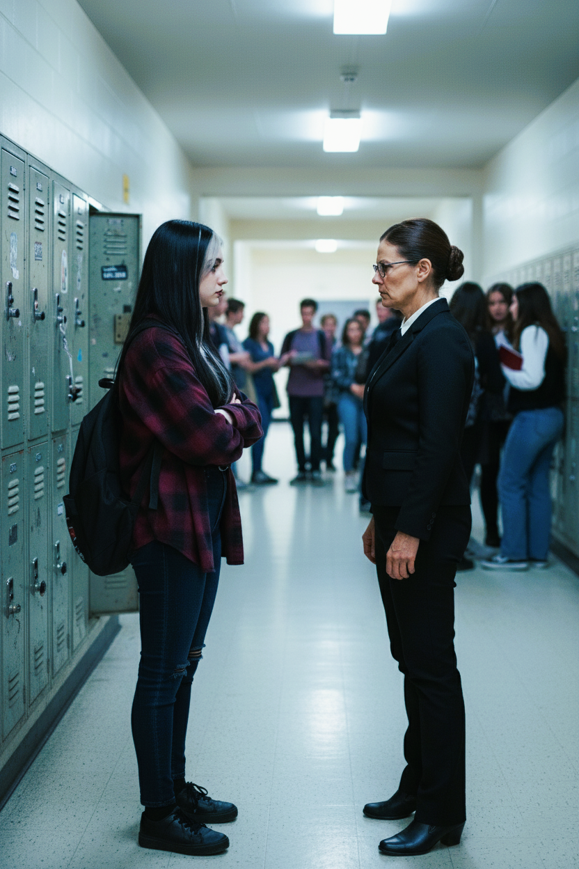 „Tady slečna má problém s kázní! Zatahovala hodinu na záchodě. To je velmi neslušné a naše škola to rozhodně nepodporuje—"