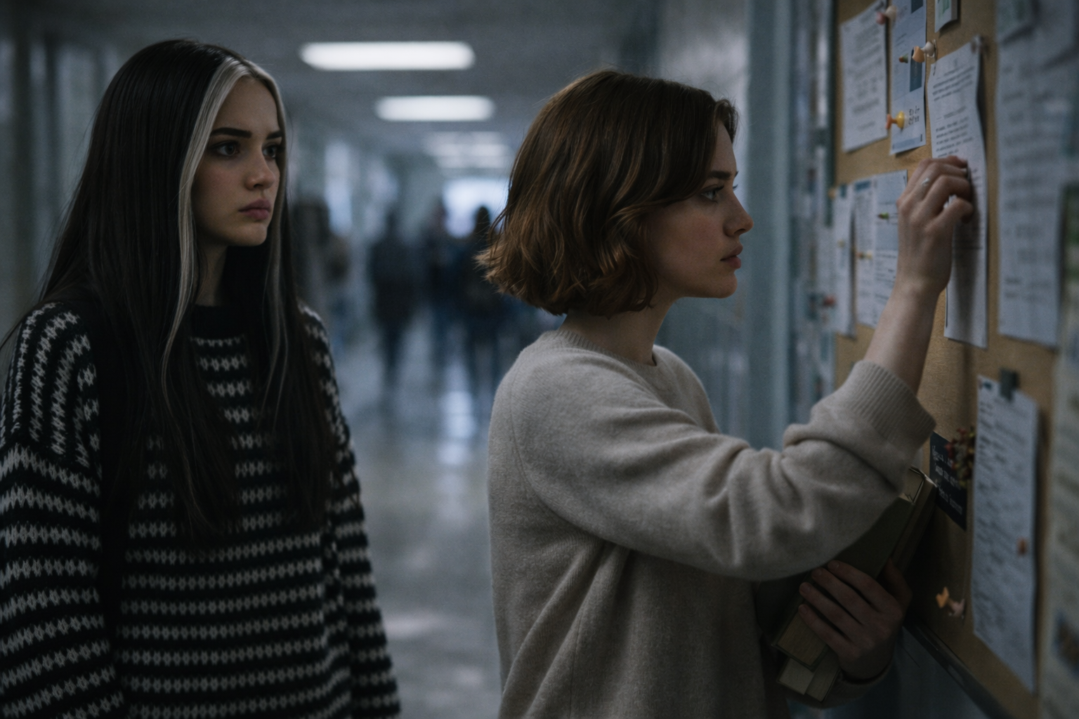 Dopsala zprávu a vyrazila směrem k východu. Vtom spatřila Maggie, která něco lepila na školní nástěnku. Raven se k ní pomalu přiblížila. Maggie si jí všimla, ale dál pokračovala v lepení.