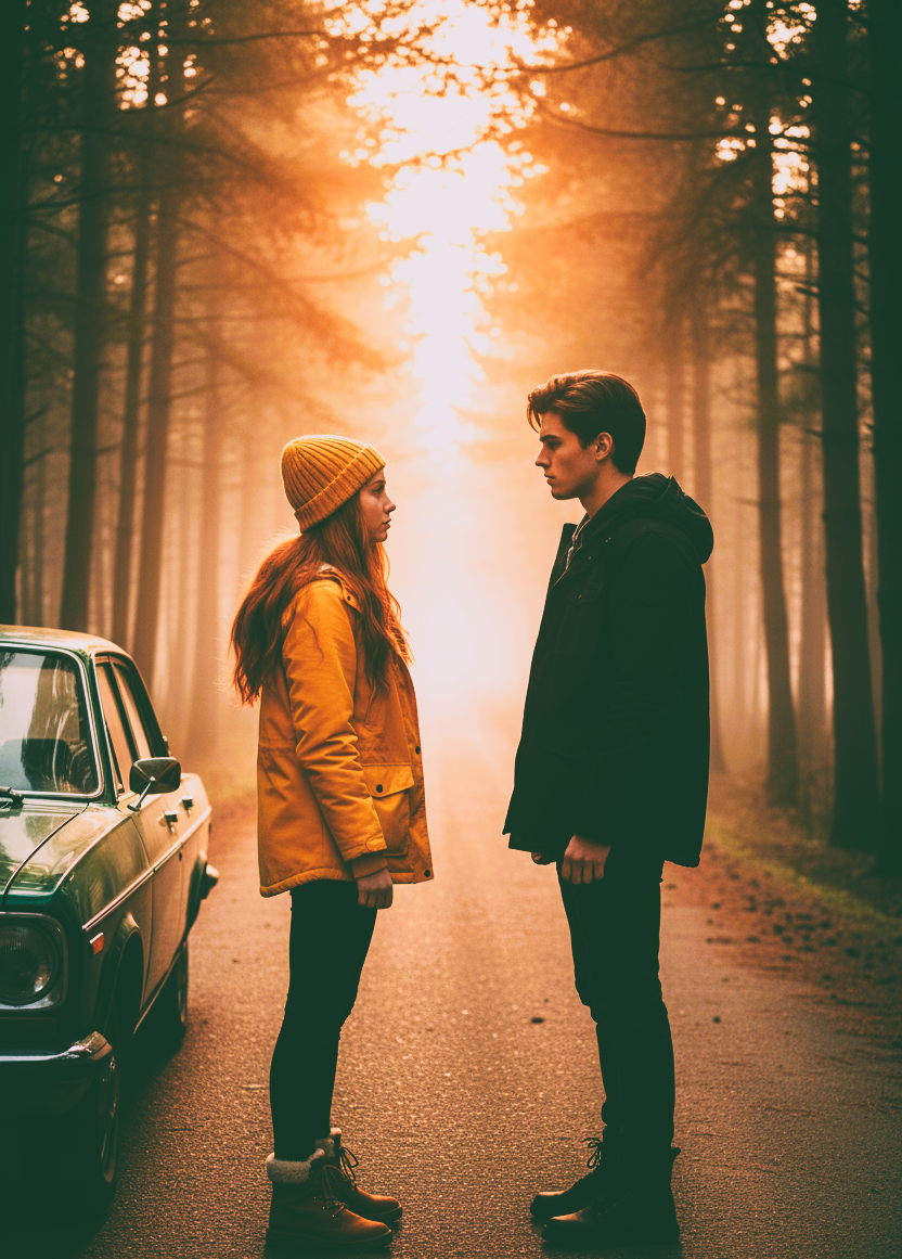Slunce už zapadalo a poslední paprsky se lámaly mezi stromy, když jsme stáli u auta.