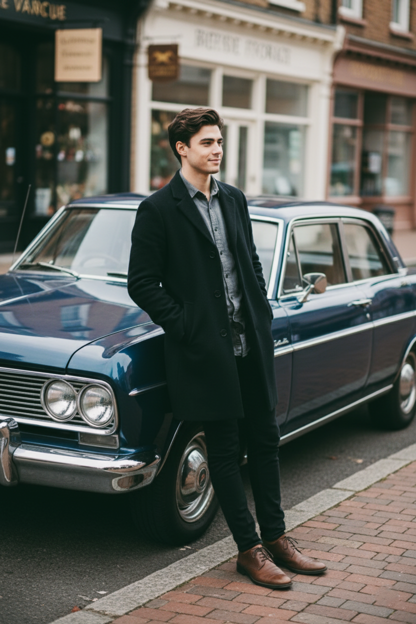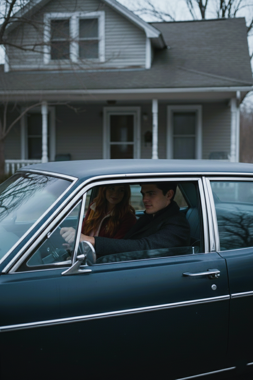 Před domem stálo černé retro auto, elegantní, lehce oprýskané, ale s osobností — přesně jako Noah.